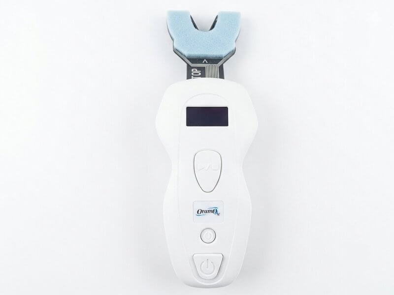 デジタル舌圧計で舌の力を数値化します。摂食・嚥下機能や発音機能の指標となり、定期的な測定でトレーニング効果の判定にも役立ちます。