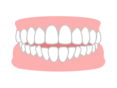 上下の歯を噛み合わせた時に、上下の前歯の重なりが深い症状です。重なりが大きいと下の前歯が見えないほど深く噛み込んでいる場合もあります。